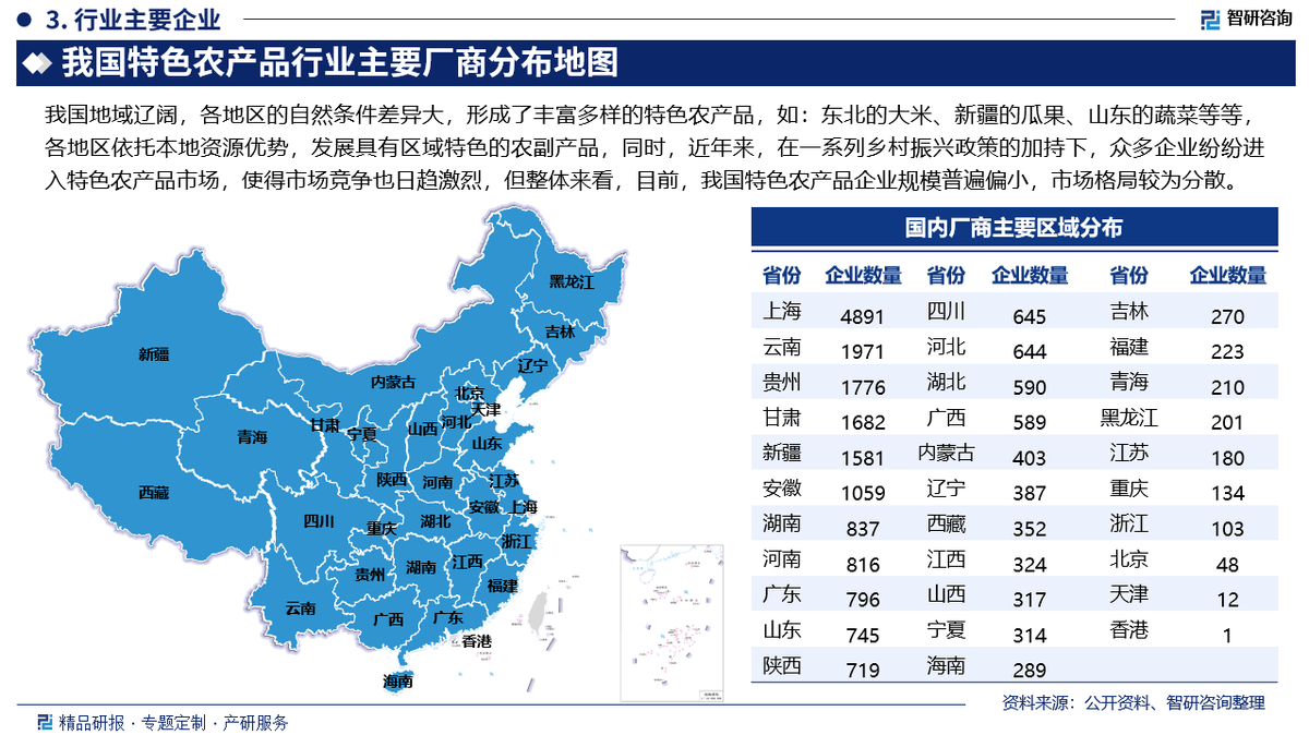 做为一个了中国特色农产物十余年成长的专业机构,智研征询但愿可以或许取所有努力于取特色农产操行业企业联袂共进,供给更多无效消息、专业征询取个性化定制的行业处理方案,为行业的成长尽绵薄之力。1:本演讲焦点数据更新至2024年12月(演讲中非上市企业受企业信批影响,相关财政目标或存正在必然的畅后性),演讲预测区间为2025-2031年。2:除一手调研消息和数据外,国度统计局、中国海关、行业协会、上市公司公开演讲(招股仿单、让渡仿单、年报、问询演讲等)等权势巨子数据源亦配合形成本演讲的数据来历。一手材料来历于研究团队对行业内沉点企业获取的一手消息数据,次要采访对象有企业高管、行业专家、手艺担任人、下旅客户、分销商、代办署理商、经销商以及上逛原料供应商等;二手材料来历次要包罗全球范畴相关行业旧事、公司年报、非盈利性组织、行业协会、机构及第三方数据库等。3:演讲焦点数据基于智研团队严酷的数据采集、筛选、加工、确保统计数据的精确靠得住。4:本演讲所采用的数据均来自合规渠道,阐发逻辑基于智研团队的专业理解,清晰精确地反映了阐发师的研究概念。智研征询做为中国财产征询范畴带领品牌,以“用消息驱动财产成长,为企业投资决策赋能”为品牌。公司融合定量阐发取定性阐发方式,用自从研发算法,连系行业交叉大数据,通过多元化阐发,挖掘定量数据背后根因,分解定性内容背后逻辑,客不雅实正在地阐述行业现状,审慎地预测行业将来成长趋向,为客户供给专业的行业阐发、市场研究、数据洞察、计谋征询及相关处理方案,帮力客户提拔认知程度、盈利能力和分析合作力。次要办事包含精操行研演讲、专项定制、月度专题、可研演讲、贸易打算书、财产规划等。供给周报/月报/季报/年报等按期演讲和定制数据,内容涵盖政策监测、企业动态、行业数据、产物价钱变化、投融资概览、市场机缘及风险阐发等。前往搜狐,查看更多。
