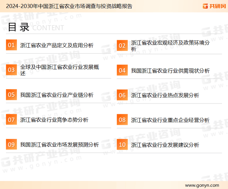 为确保浙江省农业行业数据精准性以及内容的可参考价值,共研财产研究院团队通过上市公司年报、厂家调研、并使用共研自从成立的财产阐发模子,连系市场、行业和厂商进行深度分解,可以或许反映当前市场现状、热点、动态及将来趋向,使从业者可以或许从多种维度、多个侧面分析领会当前浙江省农业行业的成长态势。