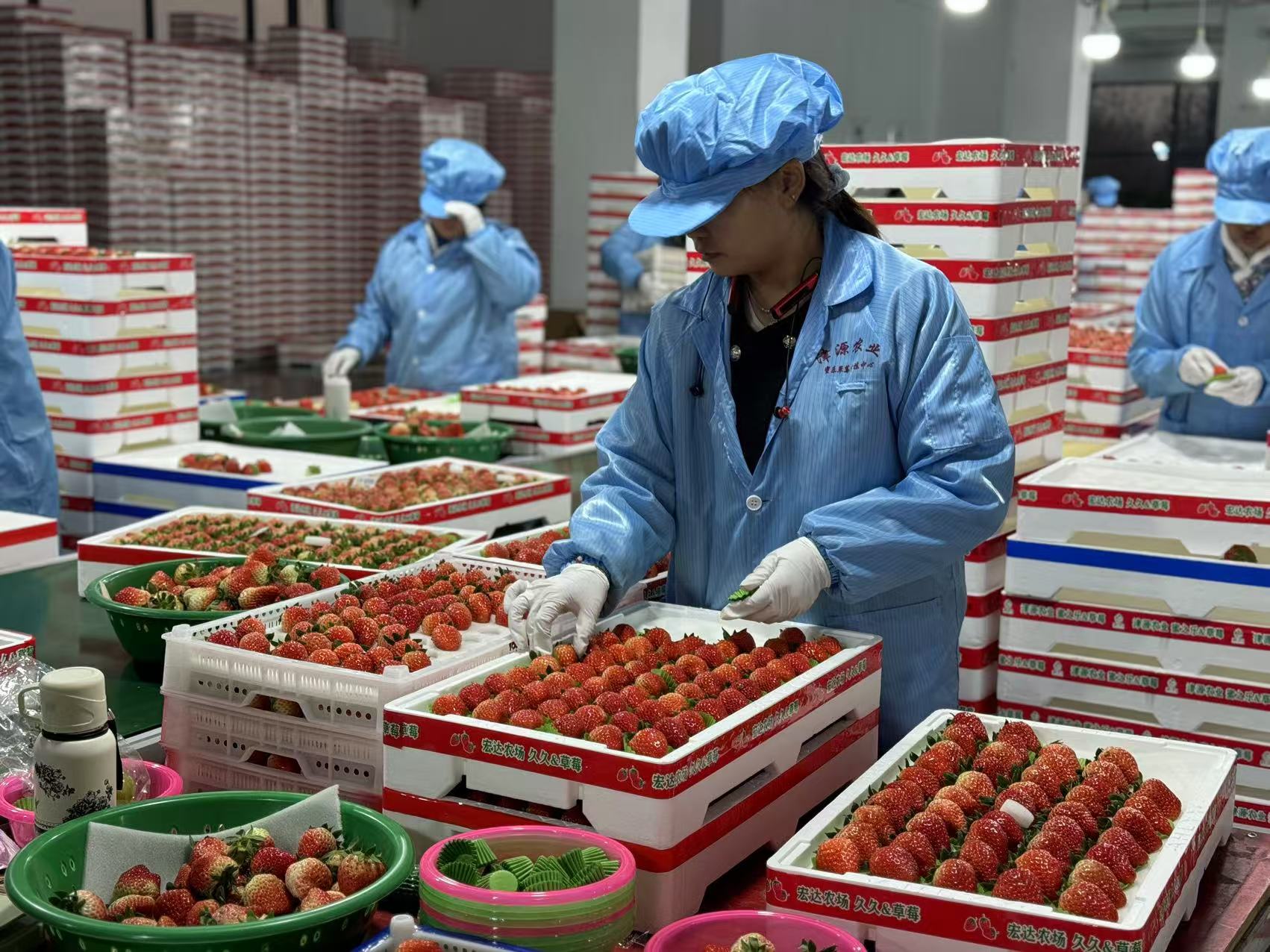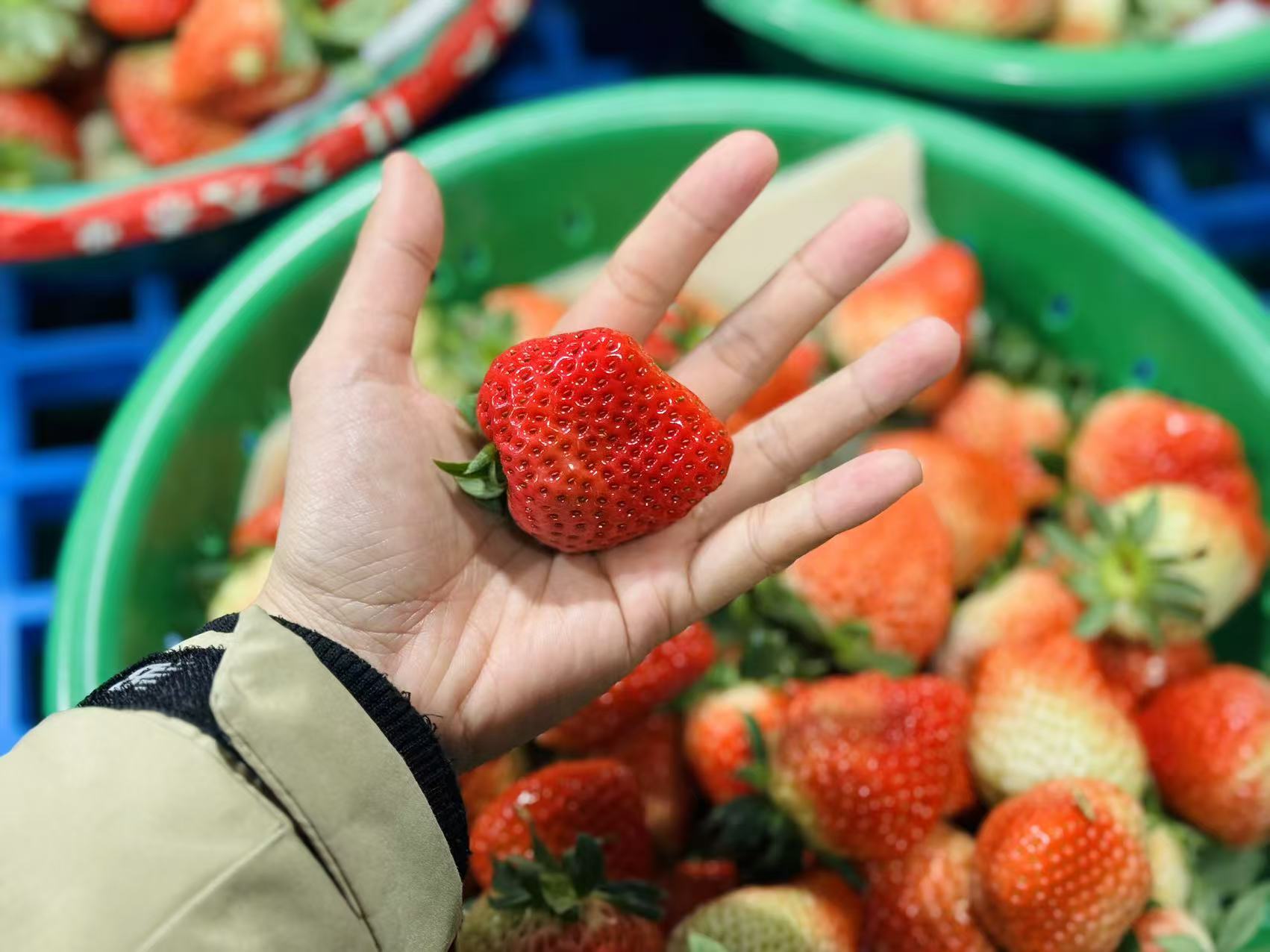 草莓产量很不变,就要处理发卖和运输的问题。本年刚投入利用的草莓买卖市场即是工做队积极争取村落复兴跟尾资金所扶植的。据该买卖市场流水线担任人孙飞引见,每天农户的草莓间接采摘了就送来这里,当晚就进行分拣、包拆等法式,敏捷通过物流发往全国各地,可以或许鲜果第二天就进入各大商超。